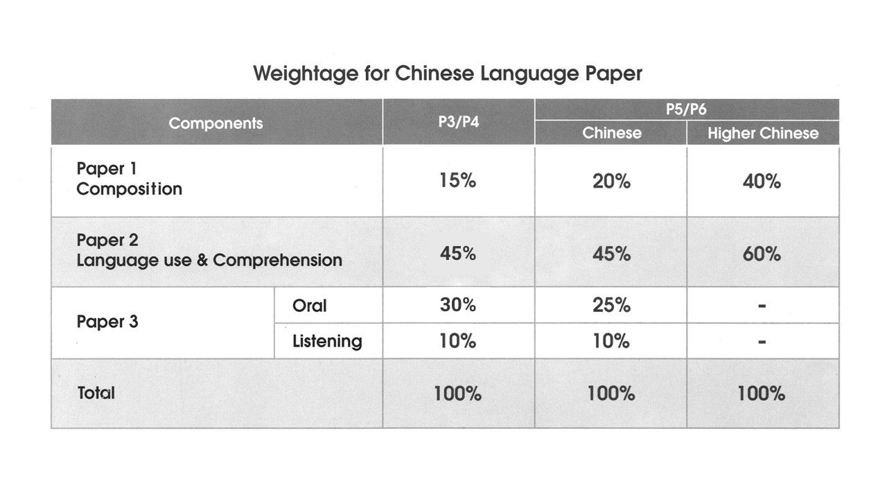 Weightage for Chinese Language Paper